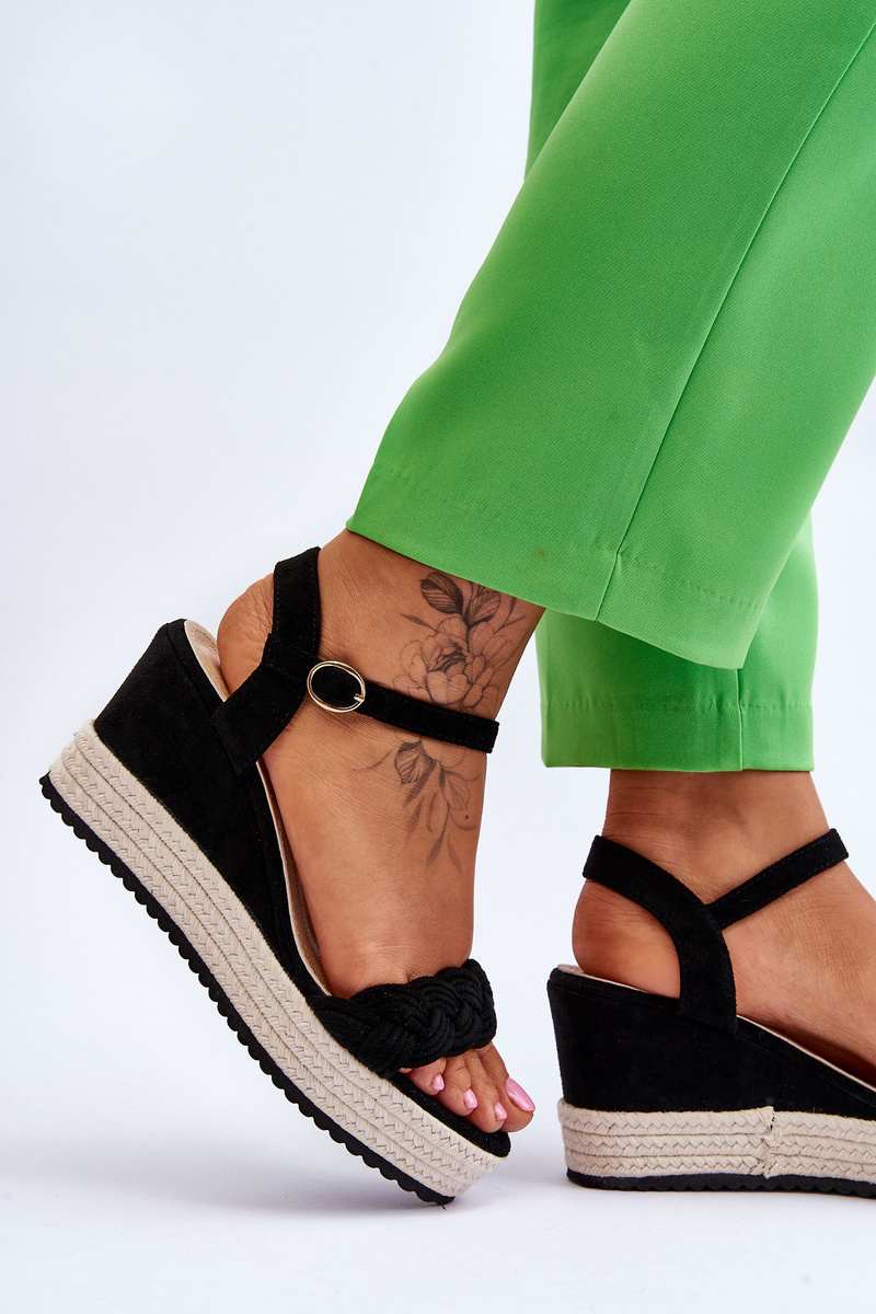 Sandały Klasyczne Zamsz Koturn Czarne Denisse
