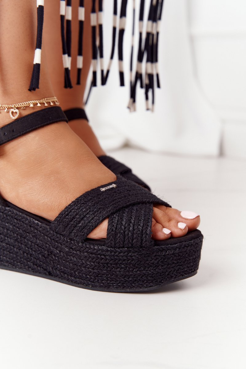 Sandały Koturn Plecionka Big Star Czarne FF274762