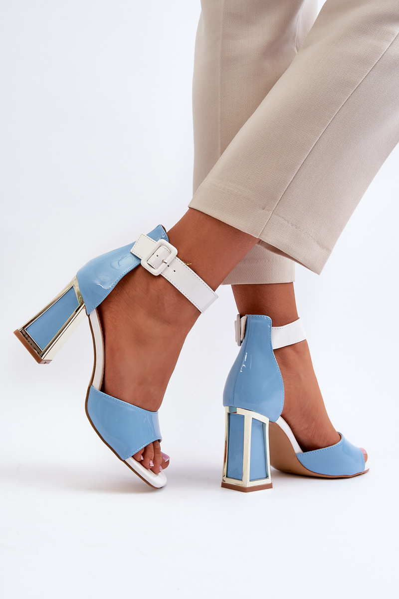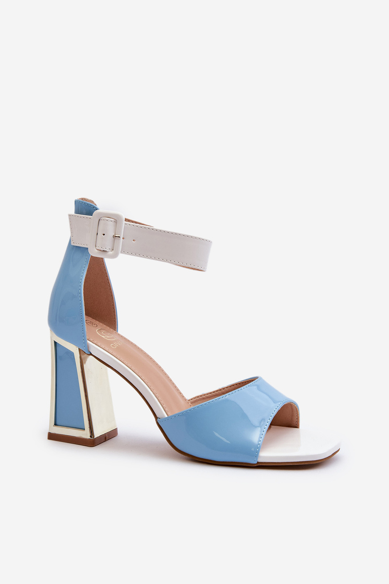 Sandały Lakierowane Na Słupku Niebieskie Adrianu CH866