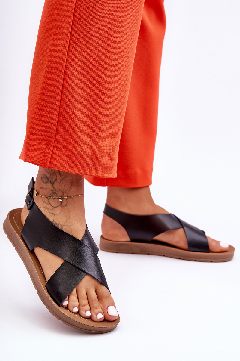 Wygoda i kobiecość w jednym? Sandały na płaskim obcasie mogą Ci to zagwarantować! Przewiewne, delikatne i jednocześnie zapewniające wysoki komfort w użytkowaniu. Ten model jest stworzony właśnie dla Ciebie! Buty wykonane zostały z eko skóry. Posiadają krzyżujące się paski zapinane z boku na regulowany pasek ze sprzączką. Osadzone zostały na delikatnej platformie. Idealne na letni sezon!