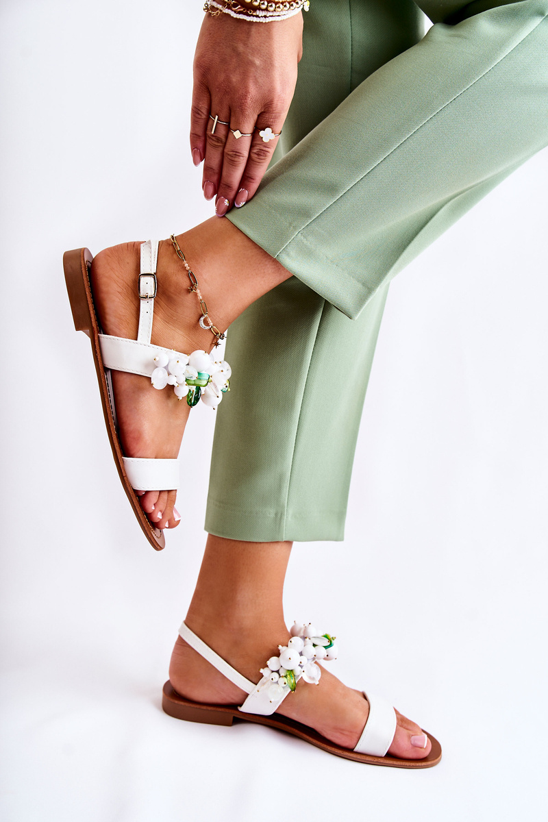 Wygoda i kobiecość w jednym? Sandały na płaskim obcasie mogą Ci to zagwarantować! Przewiewne, delikatne i jednocześnie zapewniające wysoki komfort w użytkowaniu. Ten model jest stworzony właśnie dla Ciebie! Wykonane z eko skóry. Posiadają ozdobne dodatki w postaci różnej wielkości koralików. Zapinane na sprzączkę z regulowanym paskiem. Model osadzony na płaskim obcasie z antypoślizgową podeszwą.