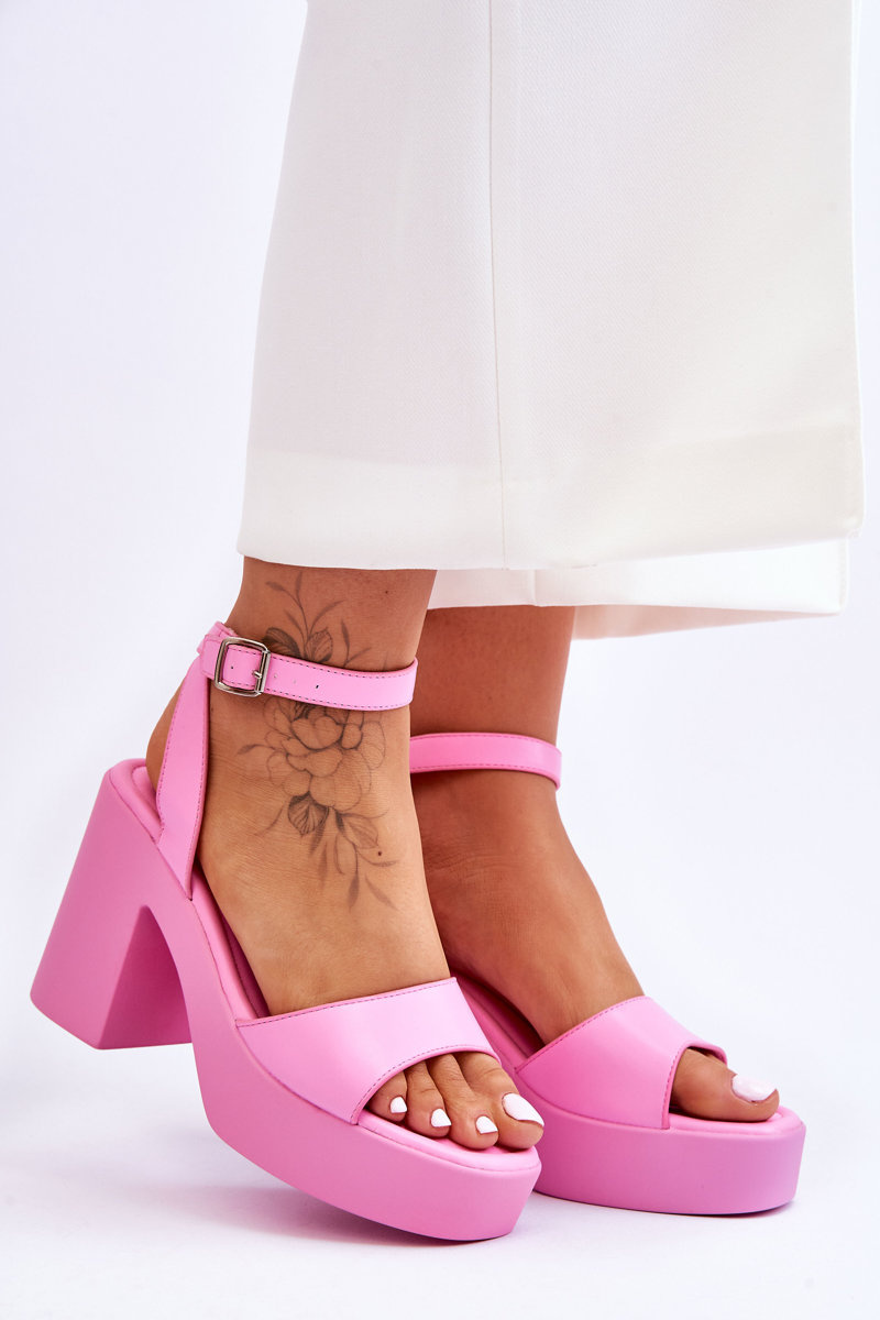 Sandały Modne Masywny Obcas Różowe Karmine