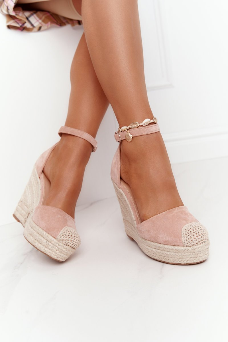 Sandały Na Koturnie Z Plecionką Jasnoróżowe Avocado