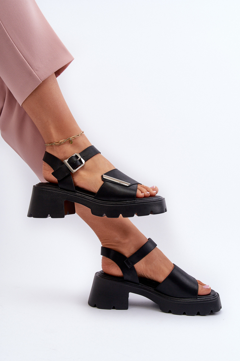 Sandały Na Platformie I Obcasie Eko Skórzane Czarne Vinceza 36257