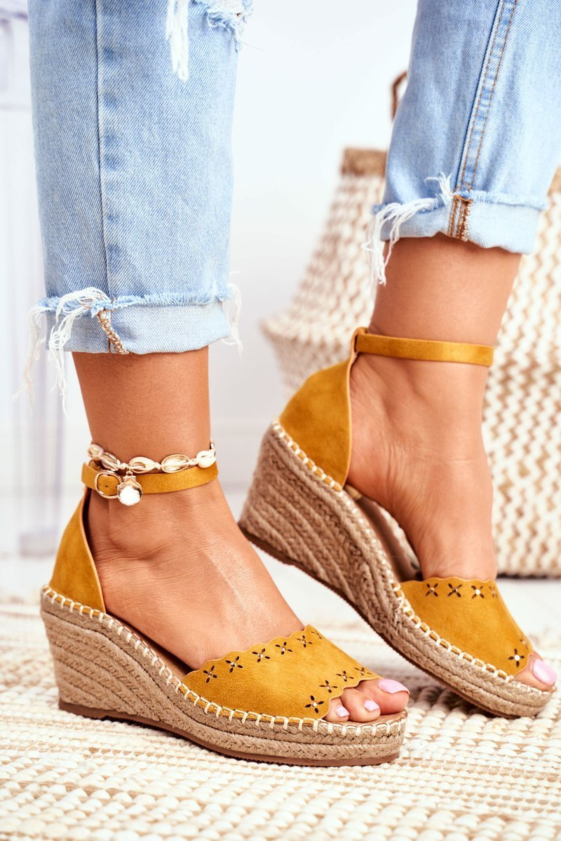 Sandały Na Plecionej Koturnie Żółte Sagittarius