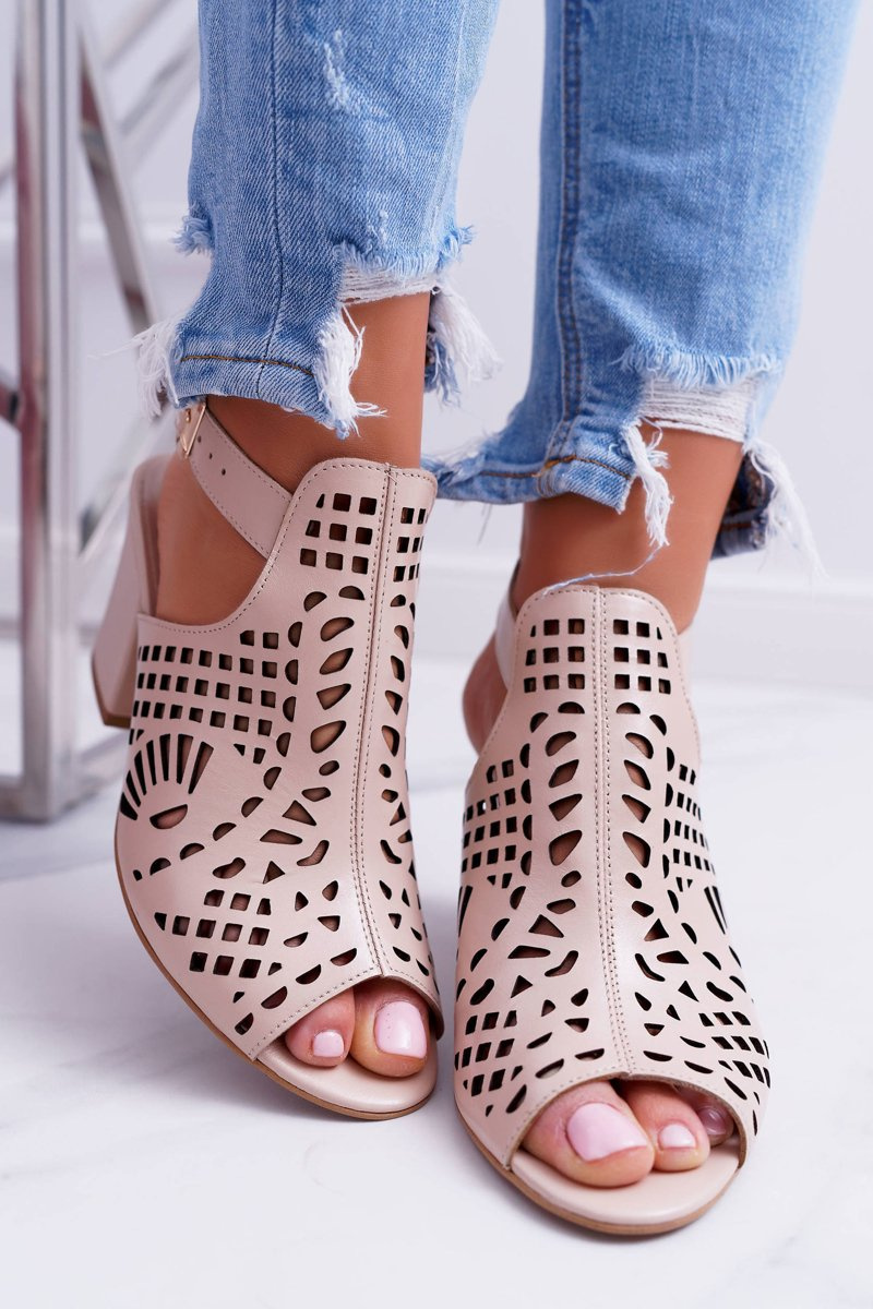 Sandały Na Słupku Laura Messi 1924 Skóra Beżowe Montoro
