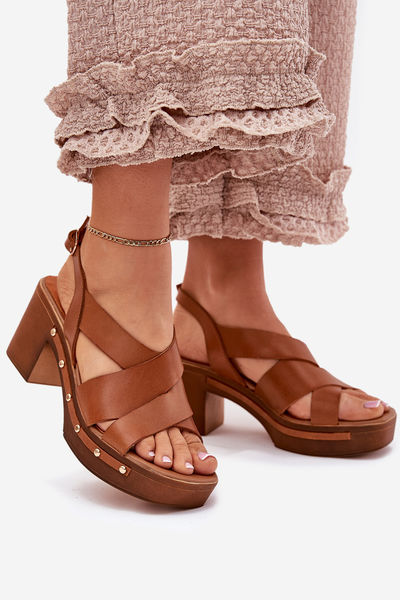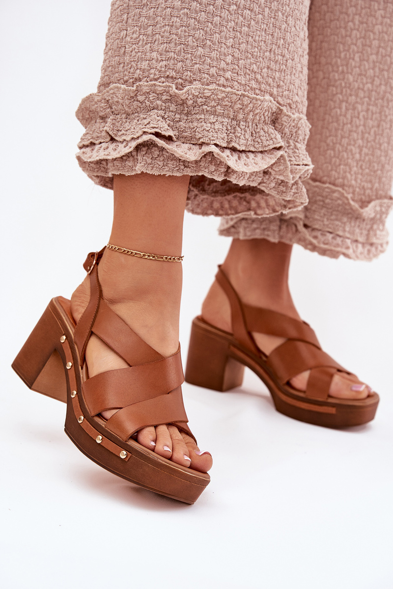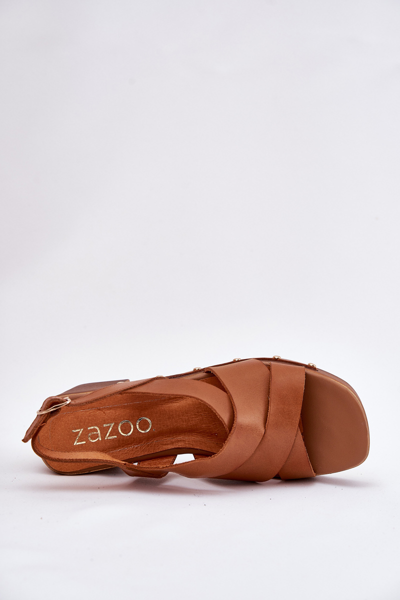 Sandały Na Słupku Skóra Naturalna Brązowe Zazoo 1081