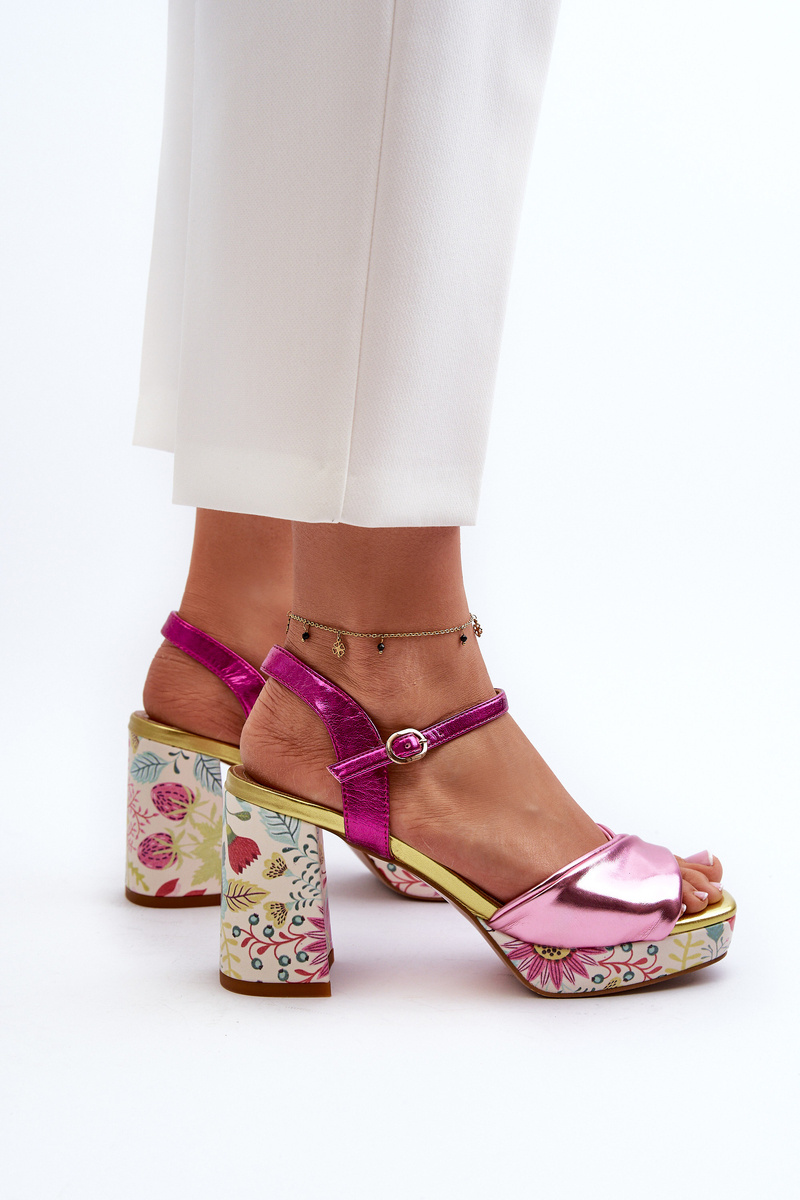 Sandały Na Słupku W Kwiaty Damskie Różowe D&A CR980