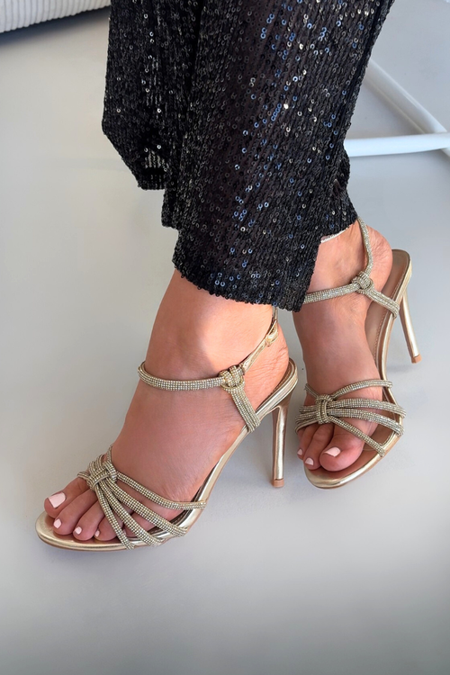 Sandały Na Szpilce Z Cyrkoniami Złote Tanelle