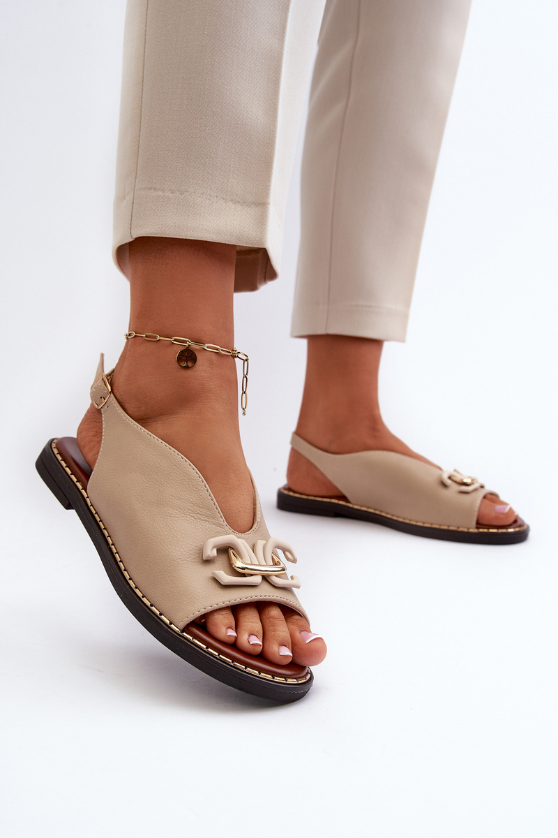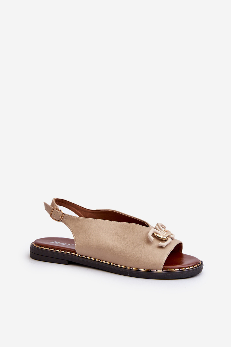 Sandały Płaski Obcas Ozdoba Beżowe Loraeleh RMR2266-9