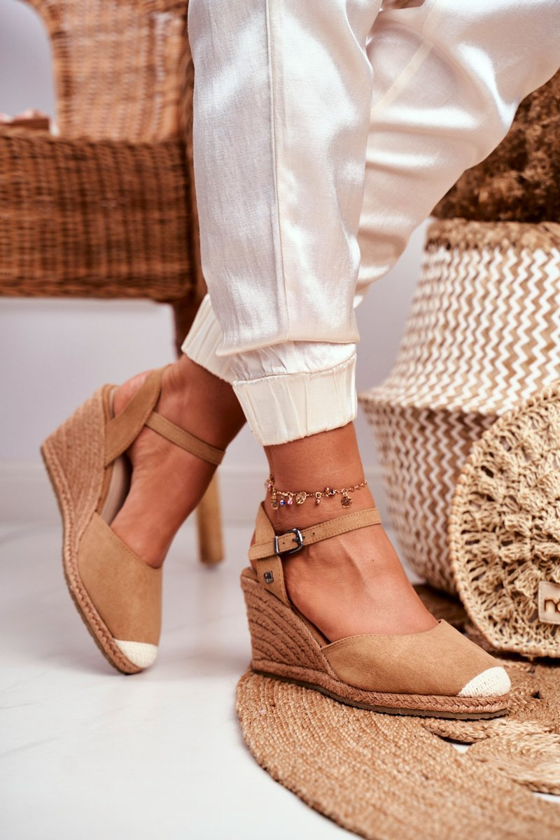 Sandały Pleciona Podeszwa Na Koturnie Big Star Jasnobrązowe DD274A169