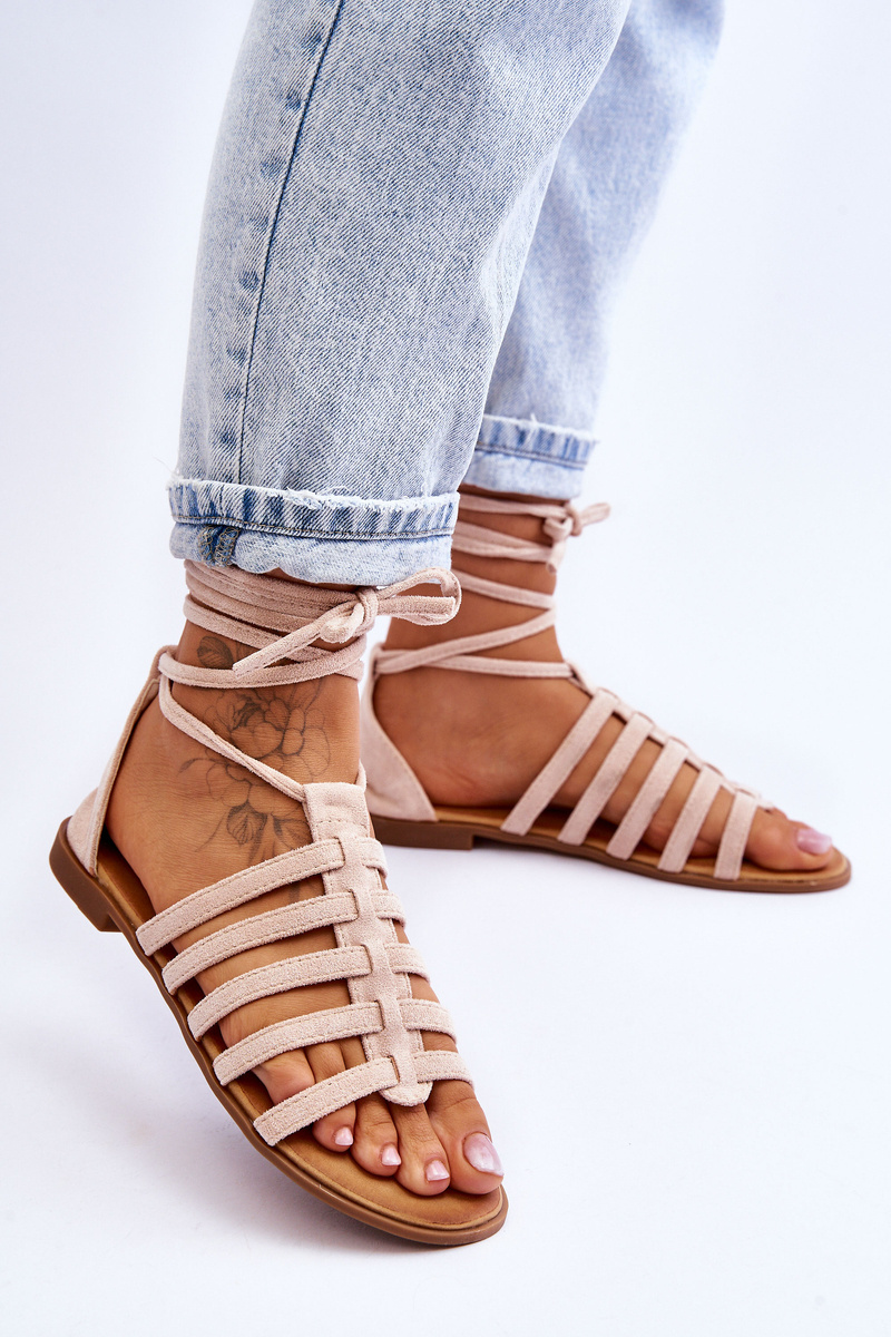 Sandały Rzymianki Damskie Zamsz Beżowe Sempre