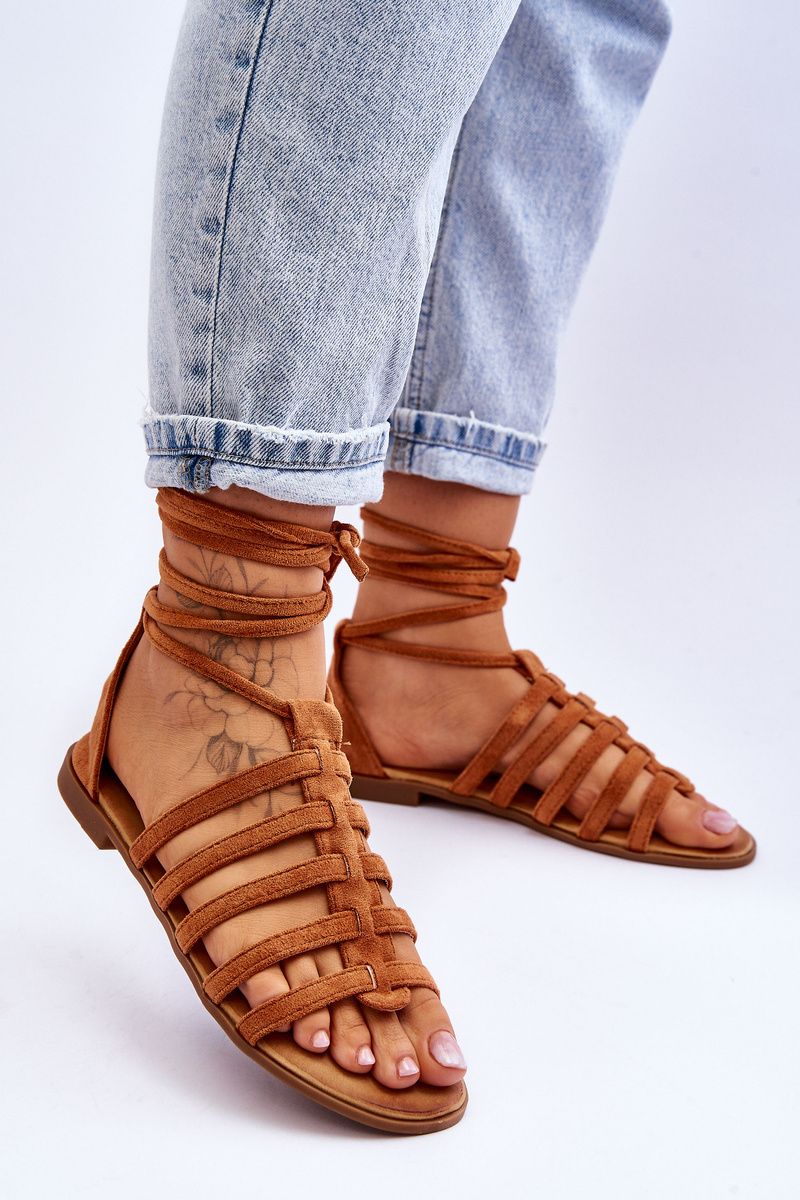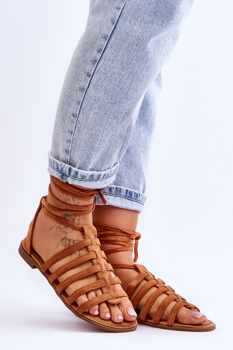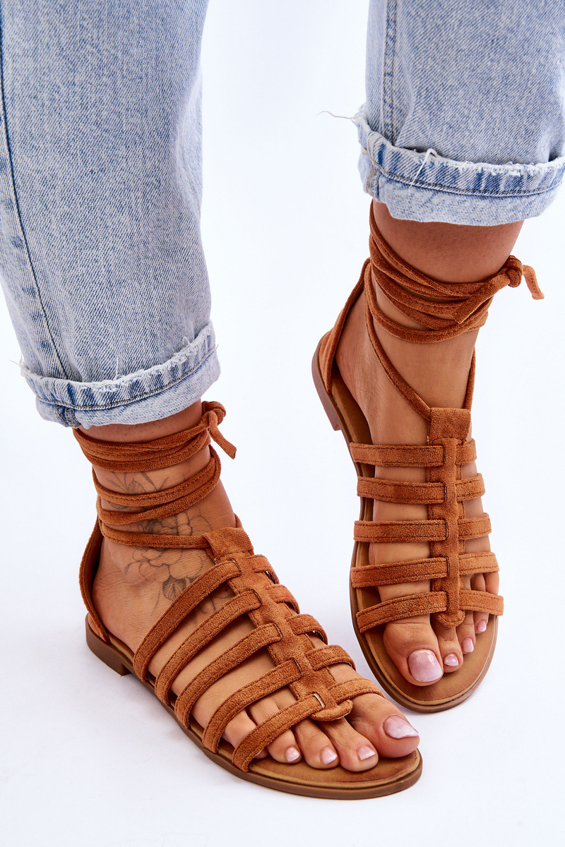 Sandały Rzymianki Damskie Zamsz Camel Sempre