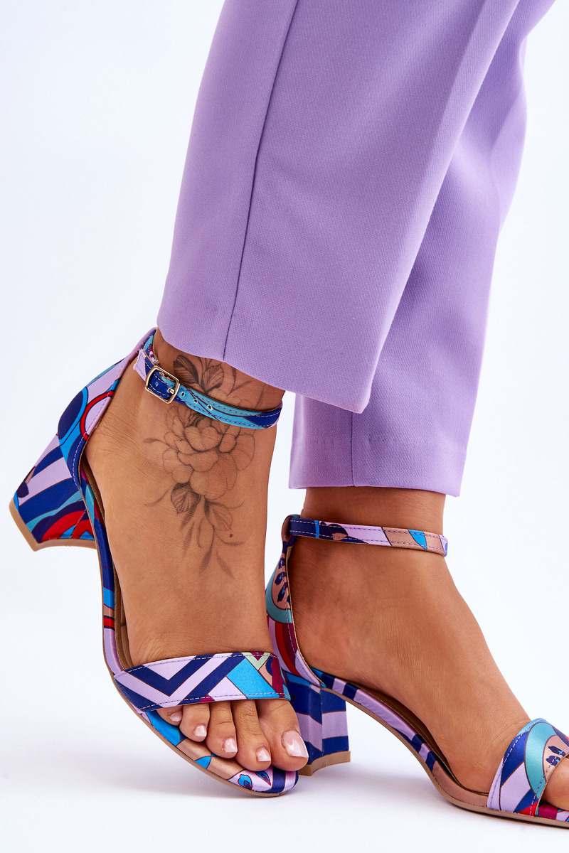 Opinie o Sandały Satyna Niski Obcas Wzory Fioletowo-Niebieskie Quincy