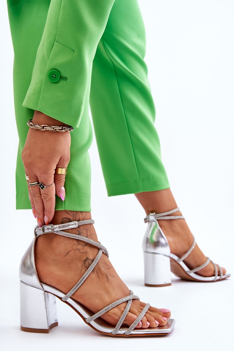 Sandałki na obcasie świetnie sprawdzą się podczas wielu stylizacji z sukienkami lub eleganckimi spodniami w roli głównej. Dzięki obcasowi nogi wyglądają na bardziej smukłe. Koniecznie musisz je mieć! Cholewka została wykonana z eko skóry, a paseczki posiadają mieniące się dżety w postaci cyrkonii. Model ten posiada regulowany pasek zapinany na sprzączkę. Miękka wkładka została wykonana z eko skóry i zapewni komfort podczas użytkowania. Sandałki osadzono na obcasie w postaci masywnego słupka.