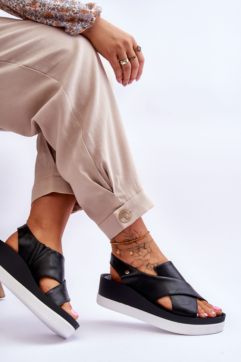 Sandały Skóra Koturn Czarne Morgan