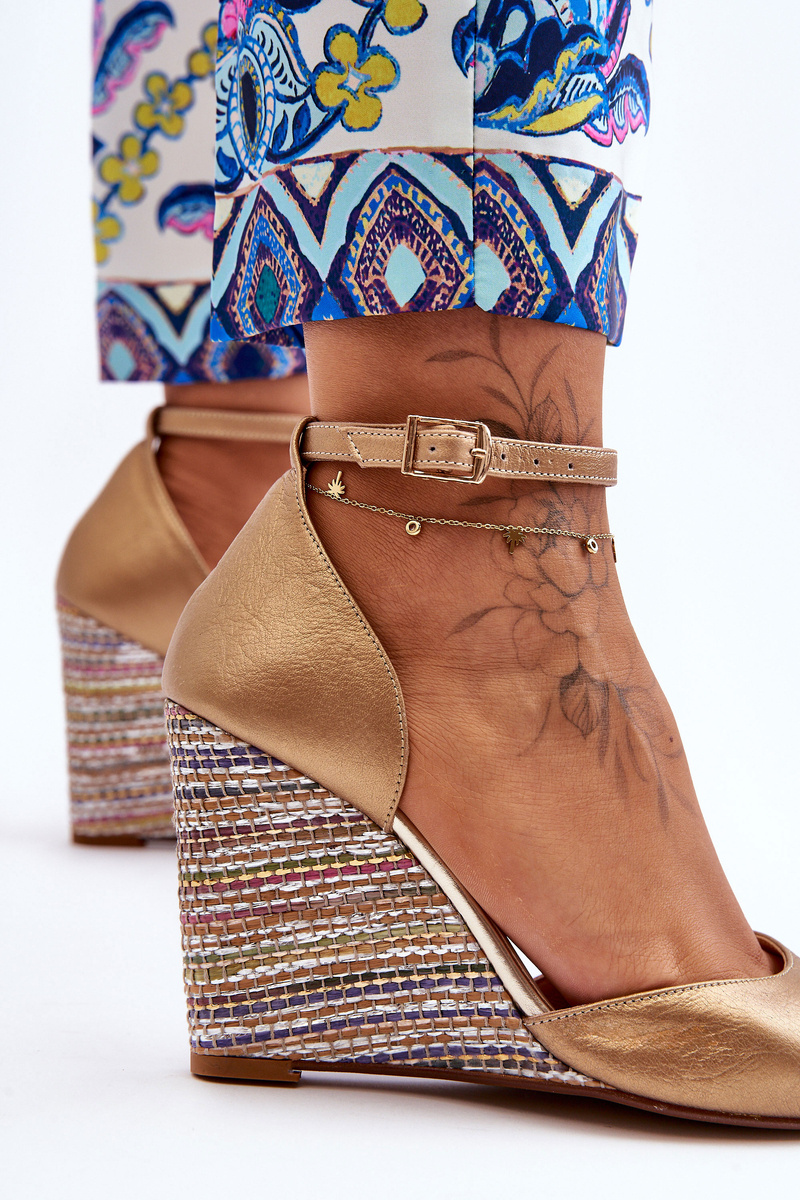 Sandały Skóra Koturn Złote Laura Messi 2603/784