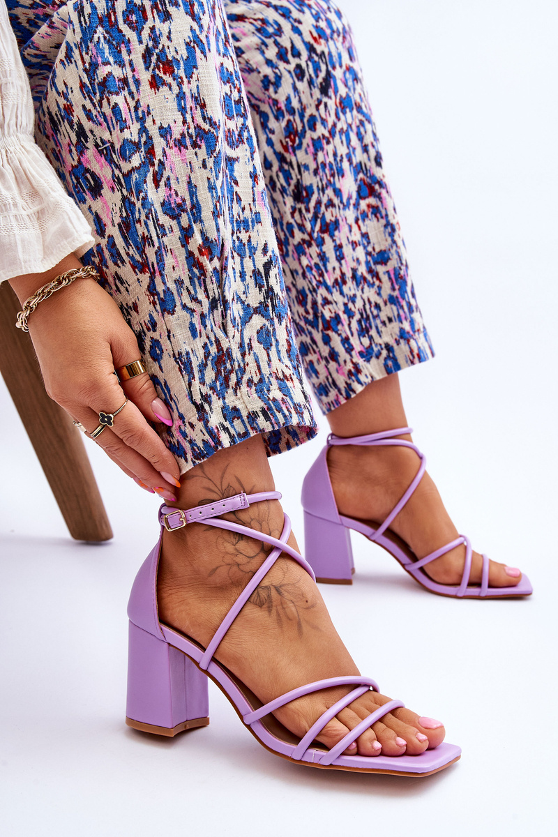 Sandały Skóra Modne Damskie Obcas Fioletowe Primma
