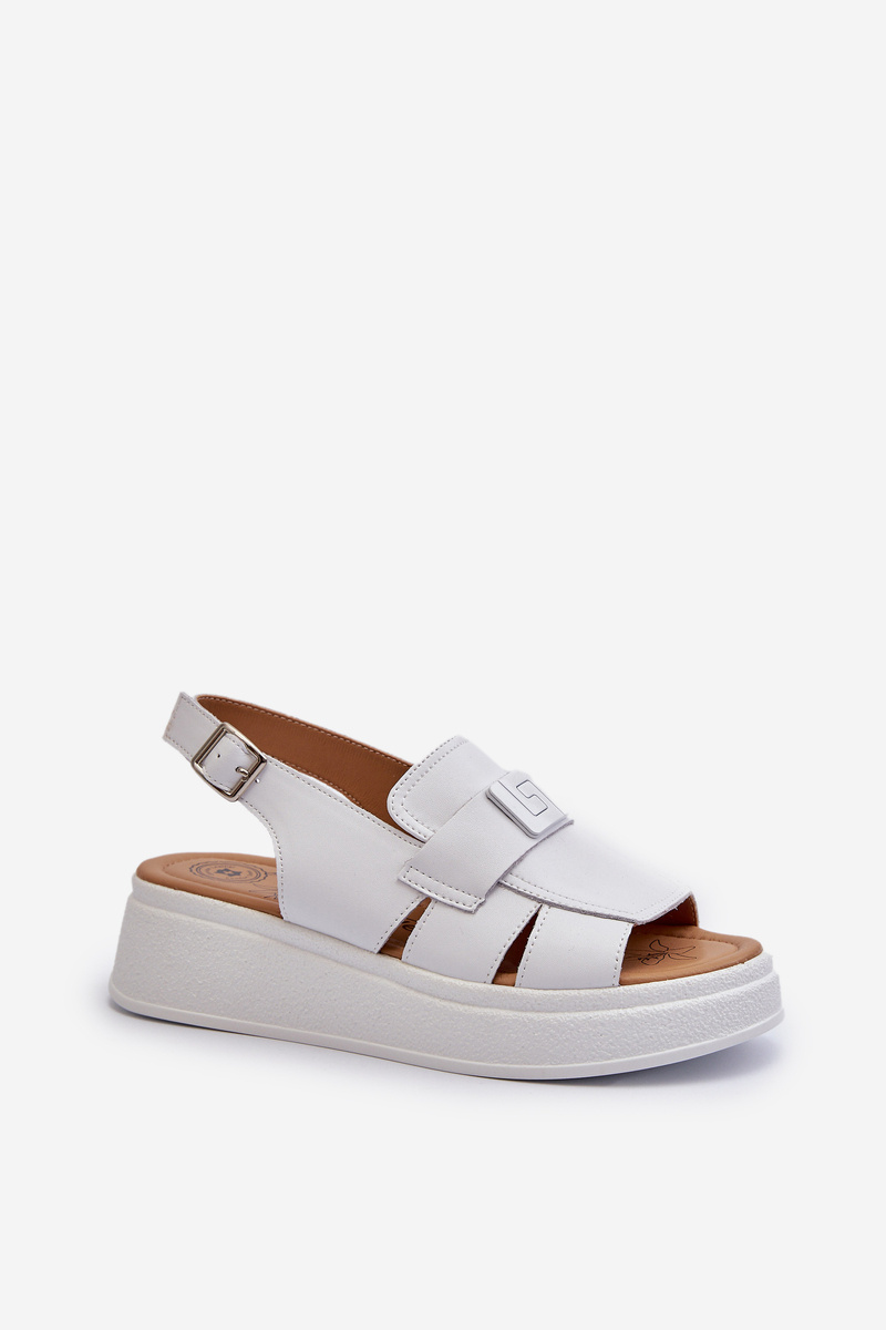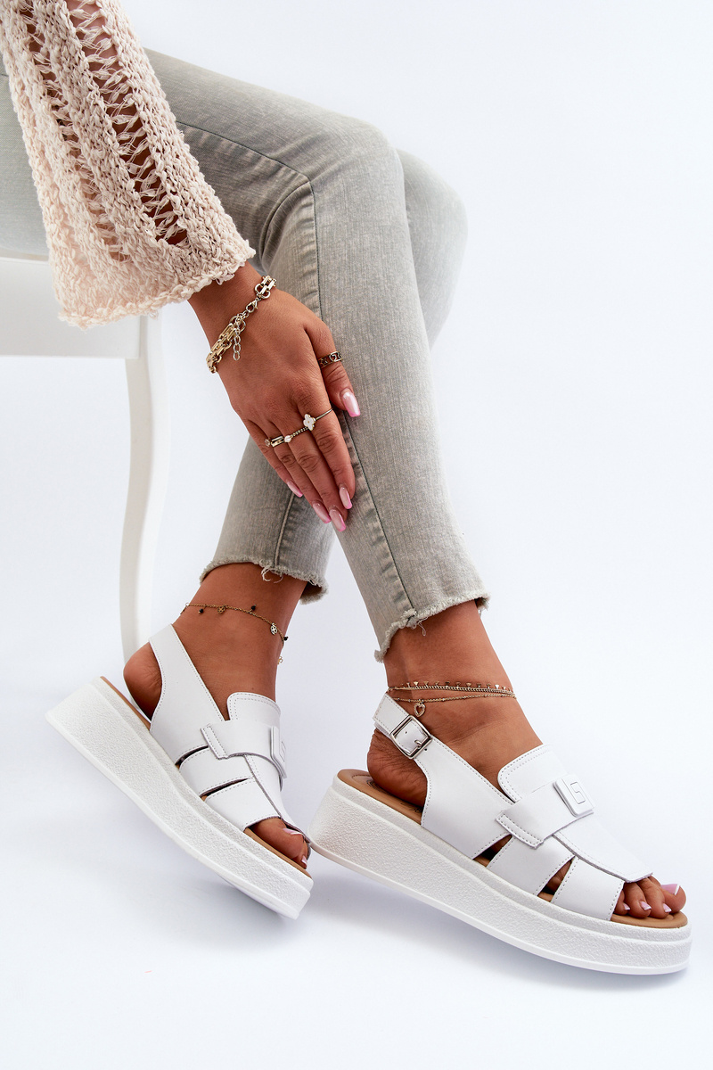 Sandały Skóra Naturalna Damskie Platforma Koturn Białe Vivitellia 24SD18-7173