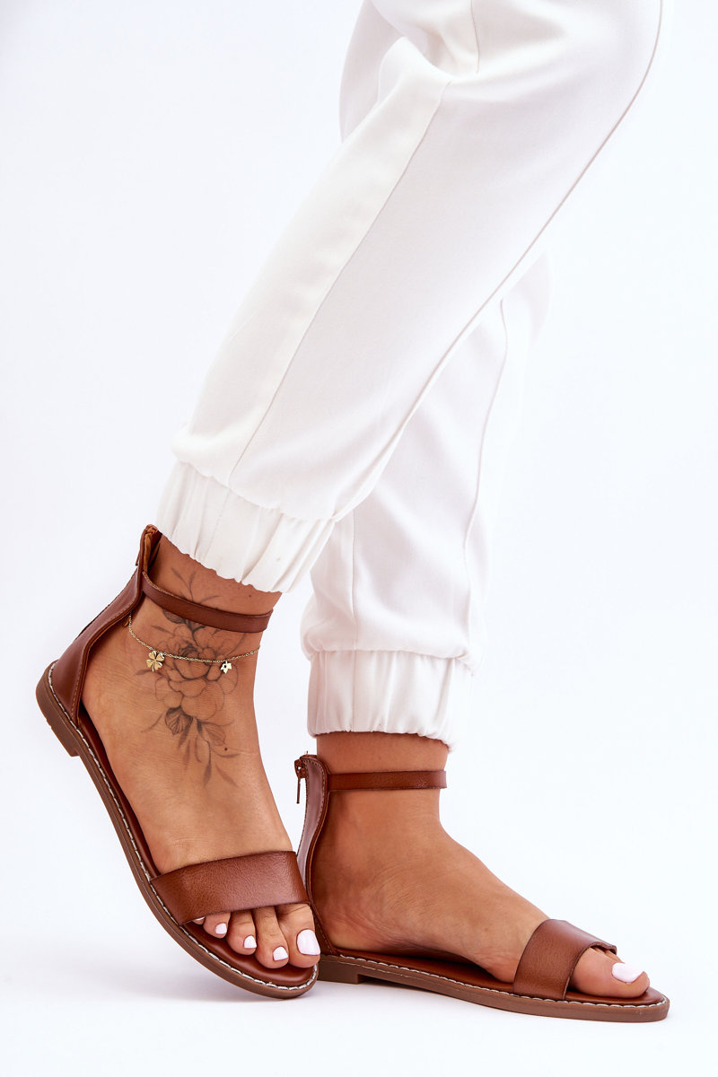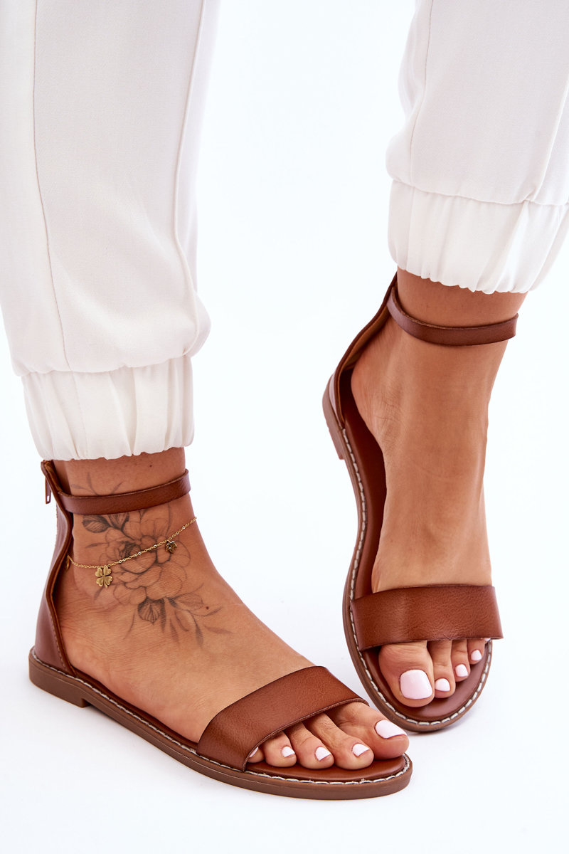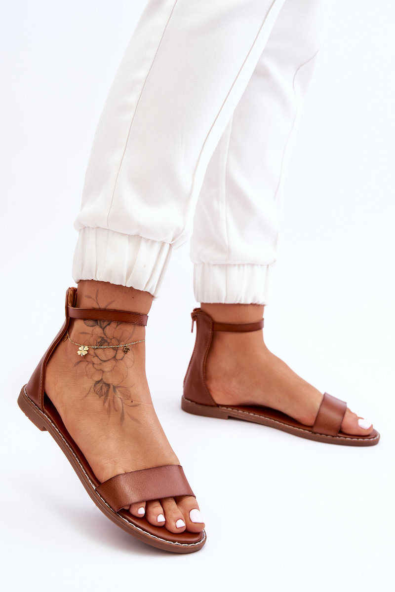 Sandały Skóra Płaskie Zamek Brązowe Millou 6868-137