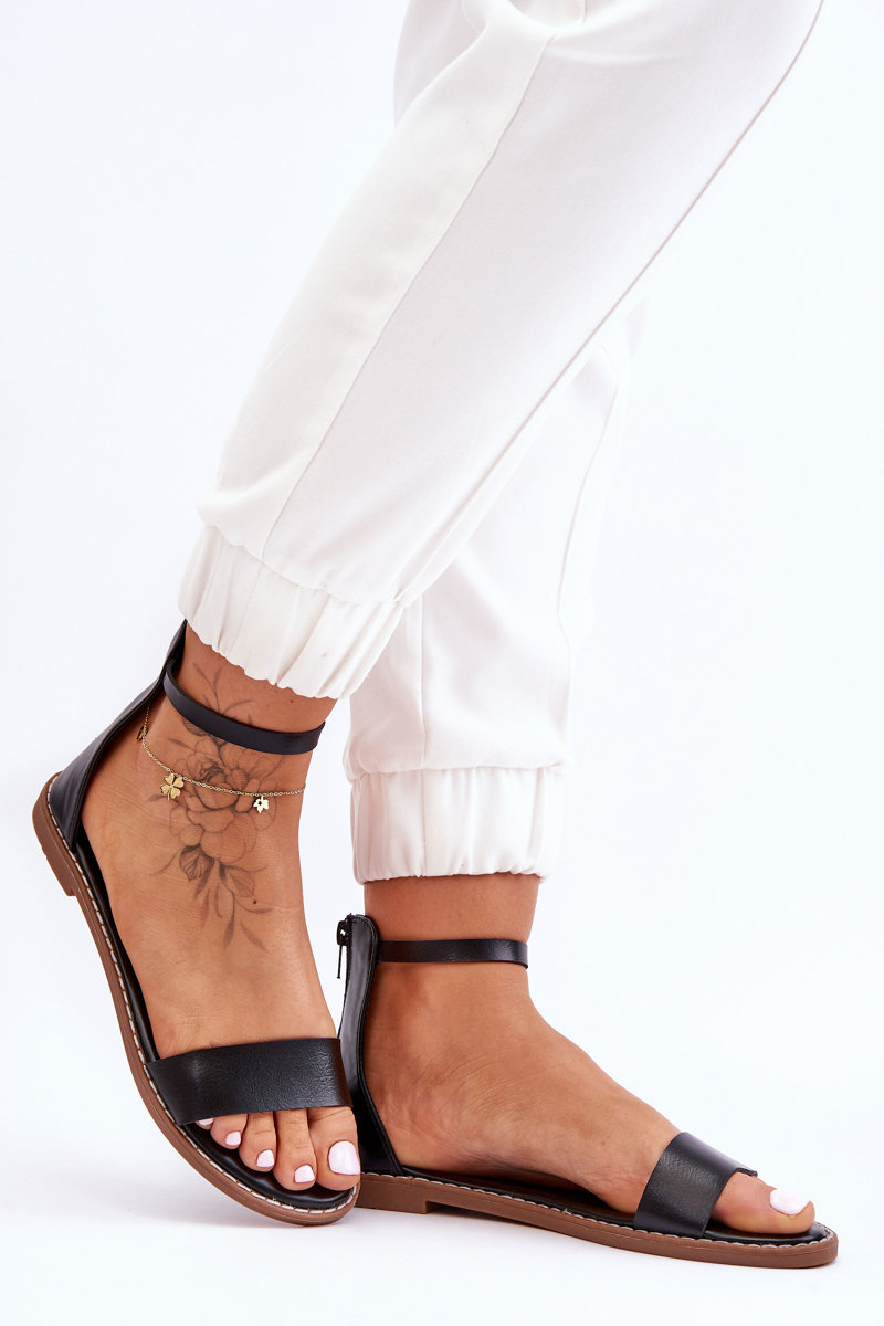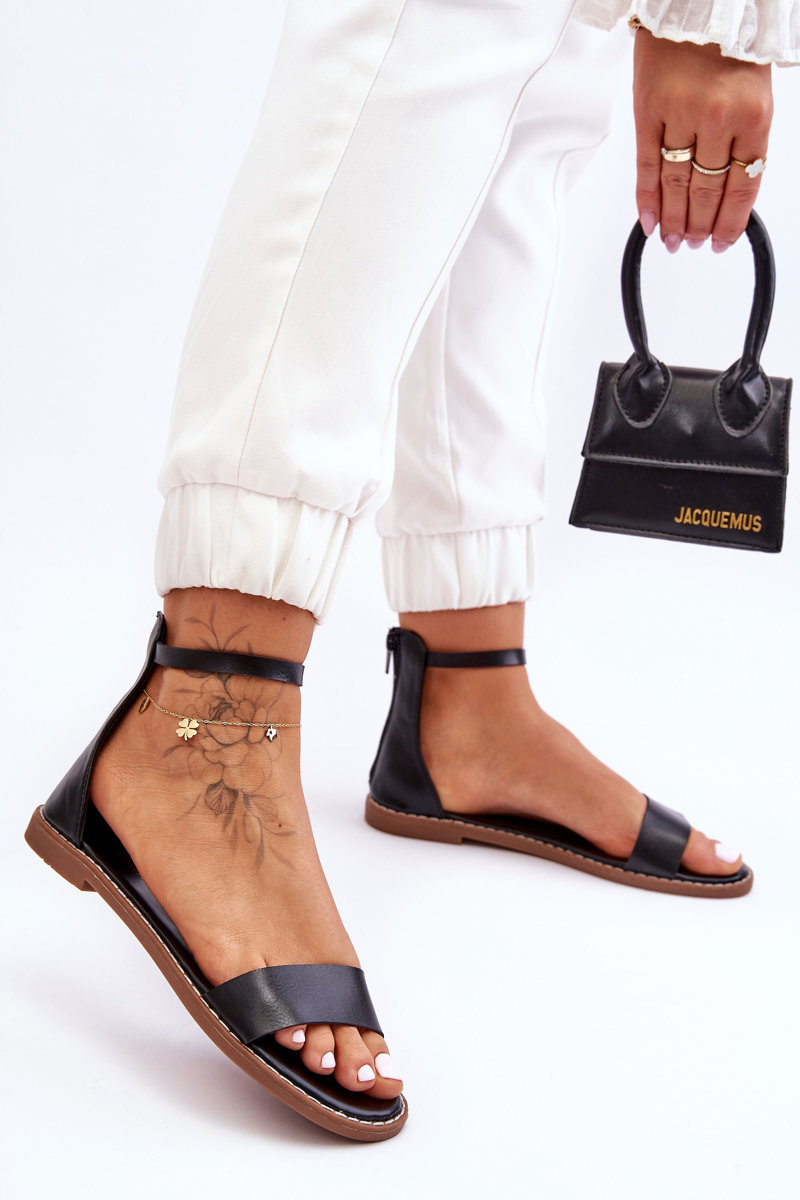 Sandały Skóra Płaskie Zamek Czarne Millou 6868-137
