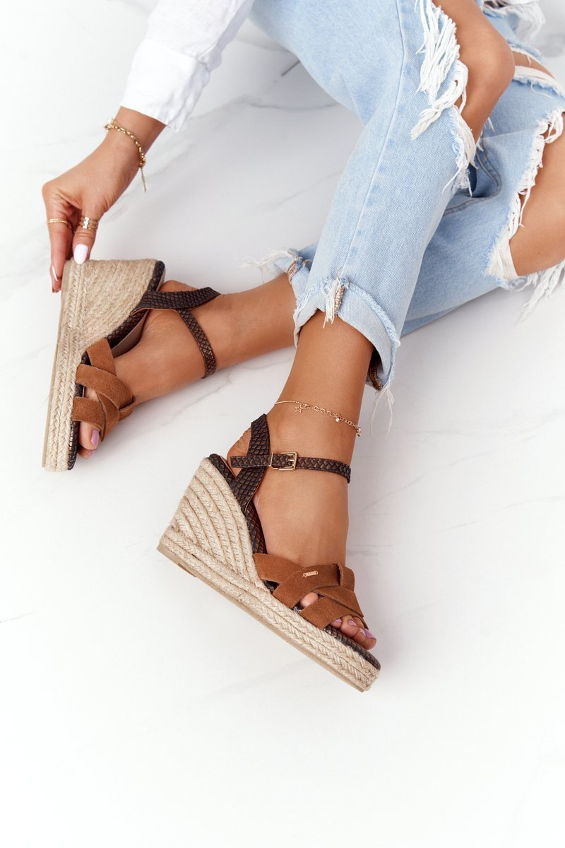 Sandały Skórzane Koturn Big Star Brązowe HH274377