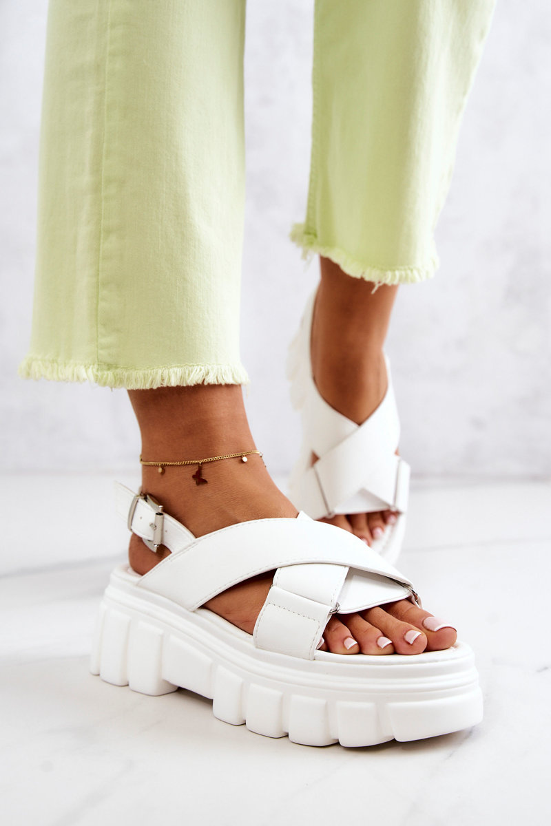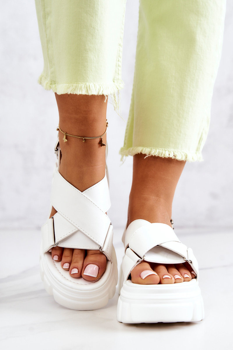 Opinie o Sandały Skórzane Masywna Platforma Białe Betti