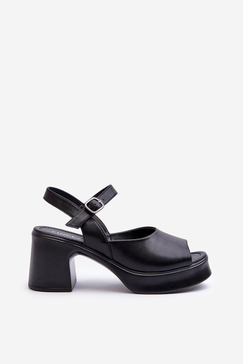 Sandały Skórzane Na Obcasie Damskie Czarne Vinceza 66627