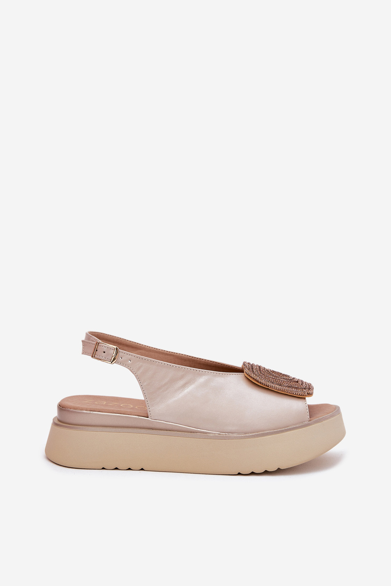 Sandały Skórzane Na Platformie Z Ozdobą Damskie Perłowy Beż Zazoo 1786
