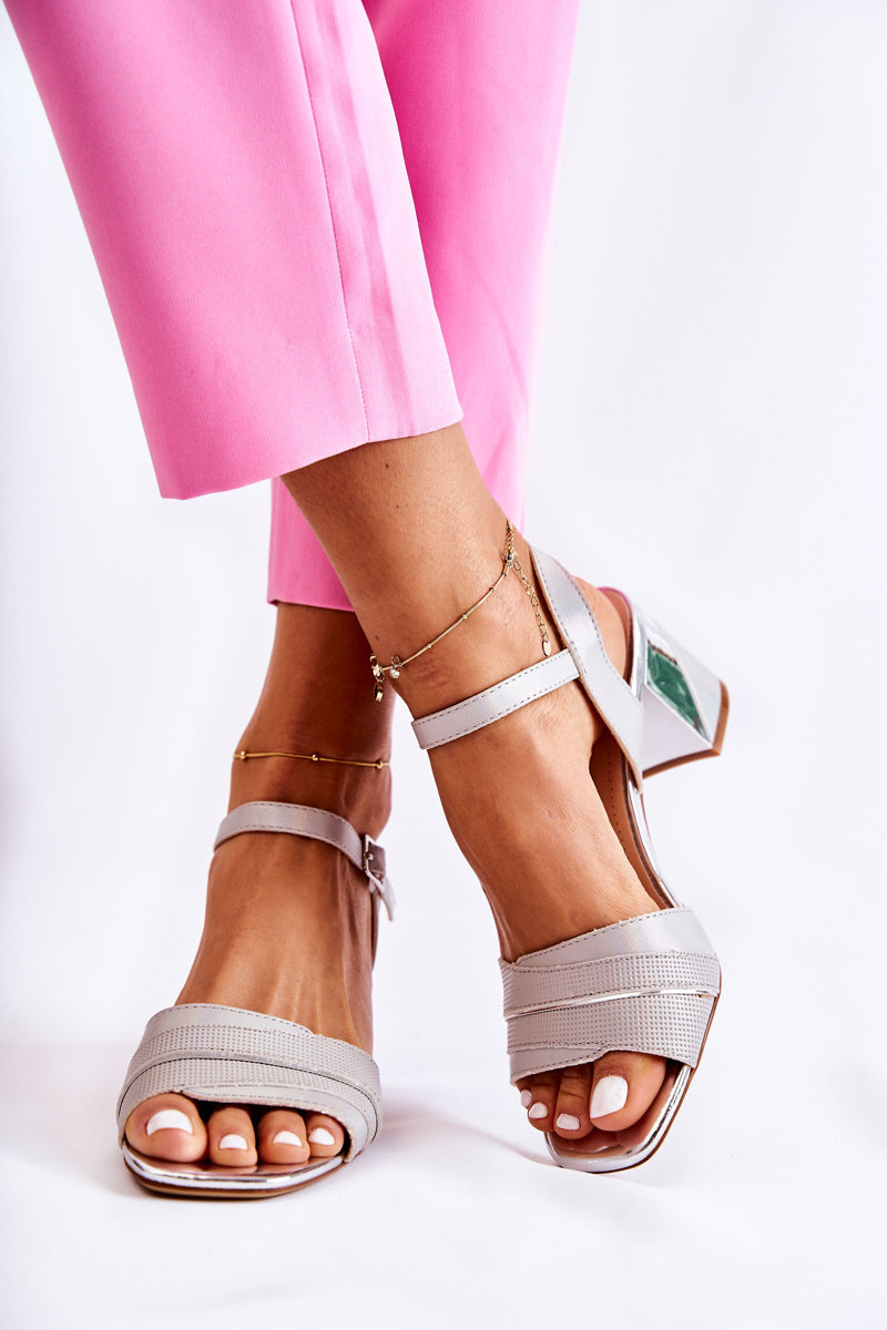 Sandały Skórzane Na Słupku Srebrne Corane