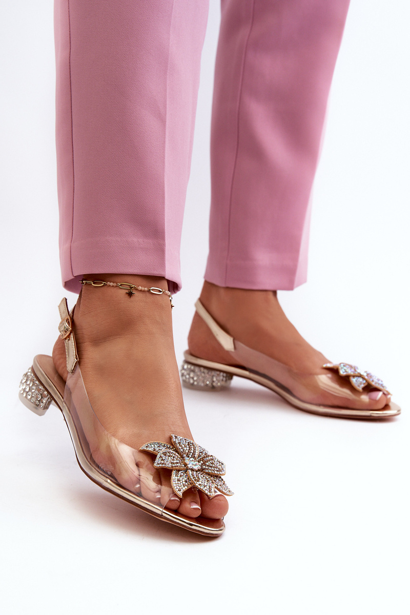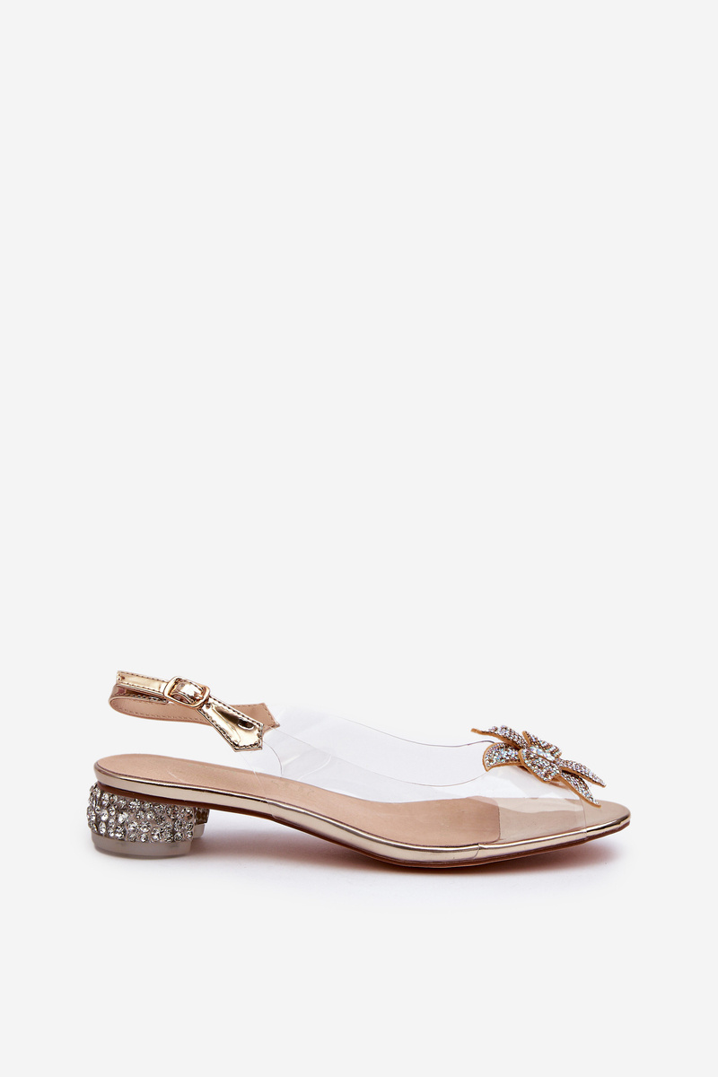 Sandały Transparentne Niski Obcas ozdoba Złote D&A MR38-383