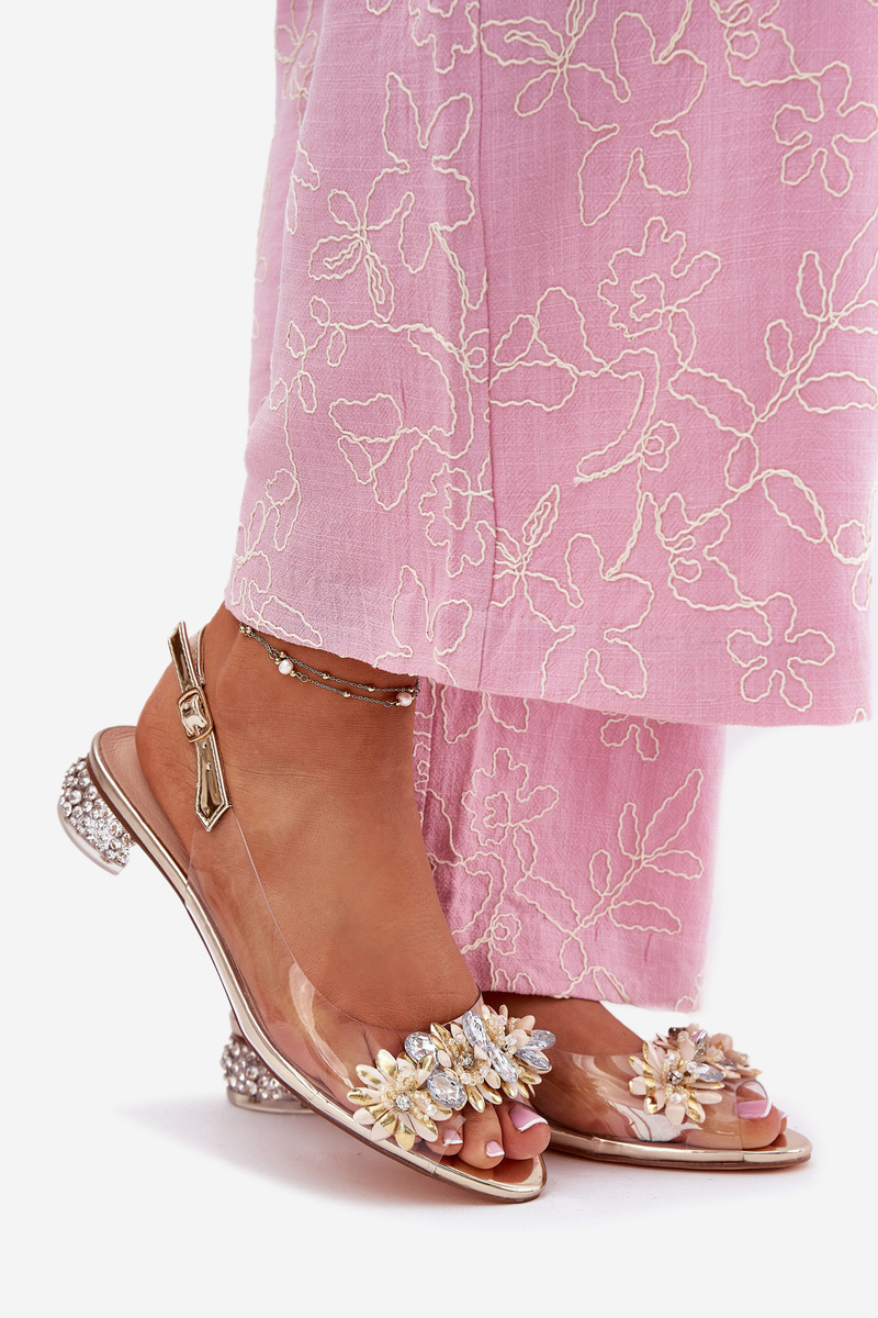 Sandały Transparentne Niski Obcas Zdobienie Złote D&A MR51-709