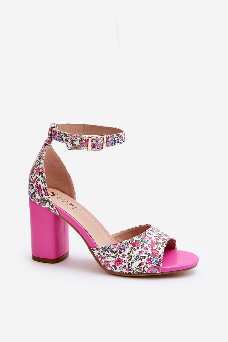 Sandały W Kwiaty Na Słupku Fuksja Vitamella GG-127