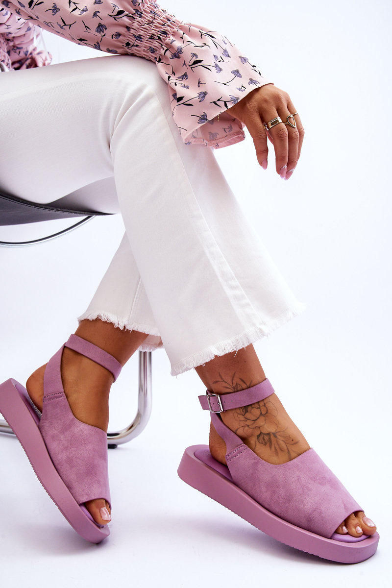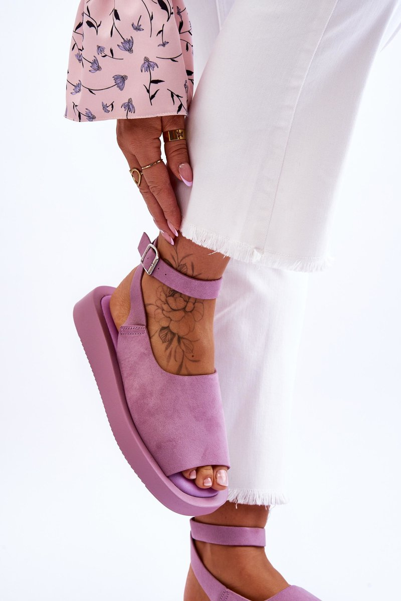 Sandały Wygodne Damskie Platforma Fioletowe Rubie