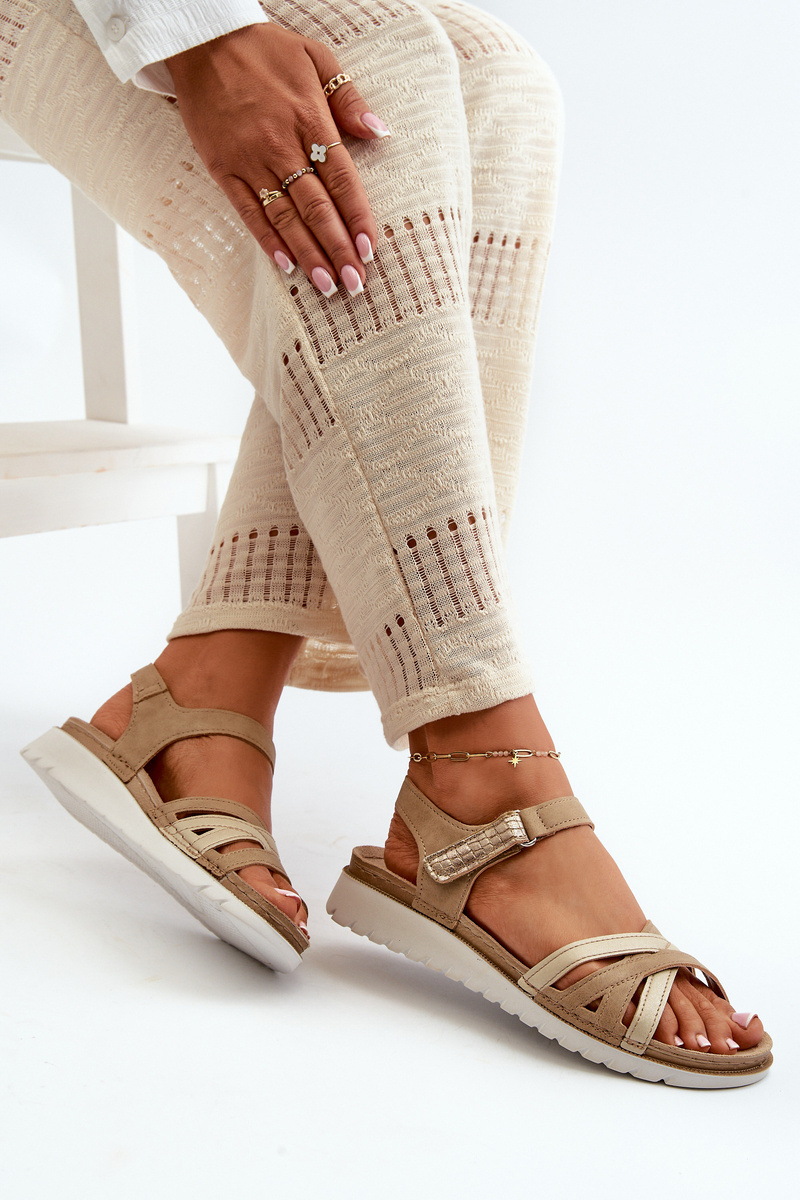 Sandały Wygodne Lekkie Damskie Na Rzep Beżowo-Złote Inblu CN000041