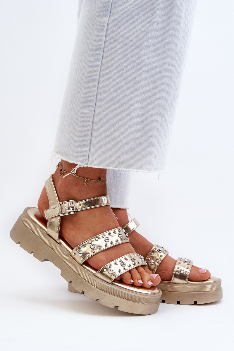 Sandały Z Ozdobami Damskie Eko Skóra Złote Arcida 100-396