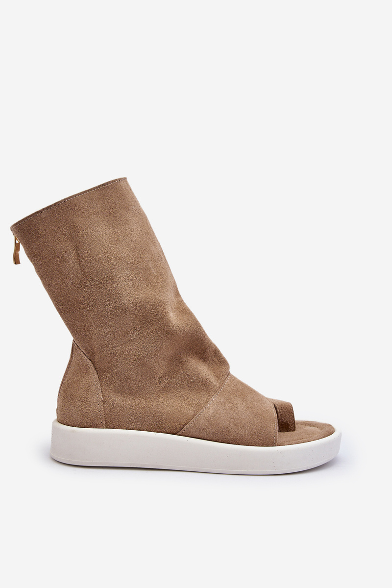 Sandały Zamsz Cholewka Ciemnobeżowe Zazoo 3441