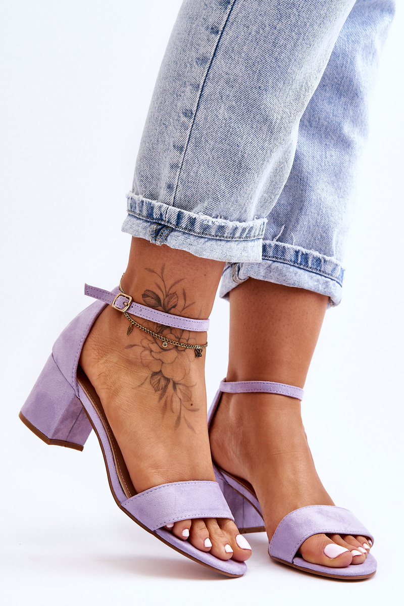 Sandały Zamsz Klasyczne Niski Obcas Fioletowe Honeymoon 1170-13