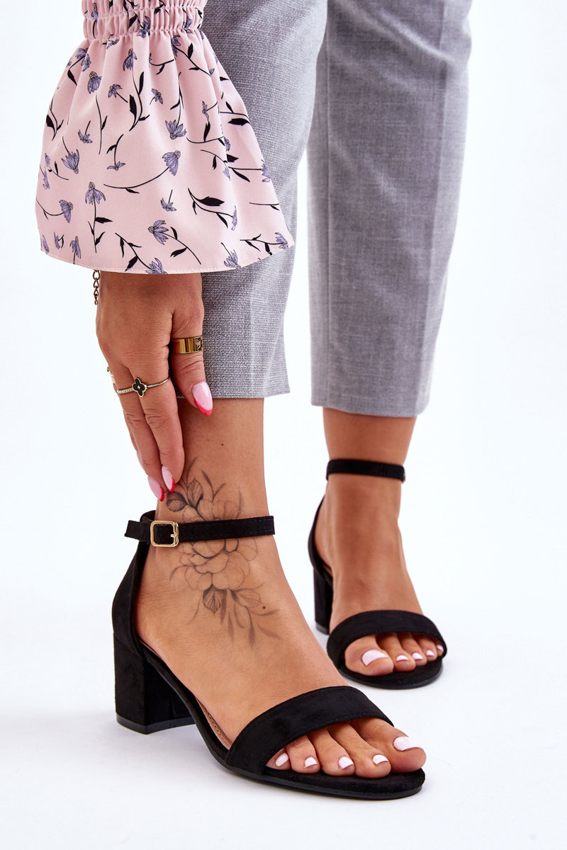 Sandałki na obcasie świetnie sprawdzą się podczas wielu stylizacji z sukienkami lub eleganckimi spodniami w roli głównej. Dzięki obcasowi nogi wyglądają na bardziej smukłe. Koniecznie musisz je mieć! Wykonane z eko zamszu. Zapinane wokół kostki na pasek ze sprzączką. Nosek odkryty, zaokrąglony. Miękka eko skórzana wkładka zapewni komfortowe użytkowanie. Osadzone na niewysokim, stabilnym słupku. Te sandałki sprawdzą się na wiele okazji!