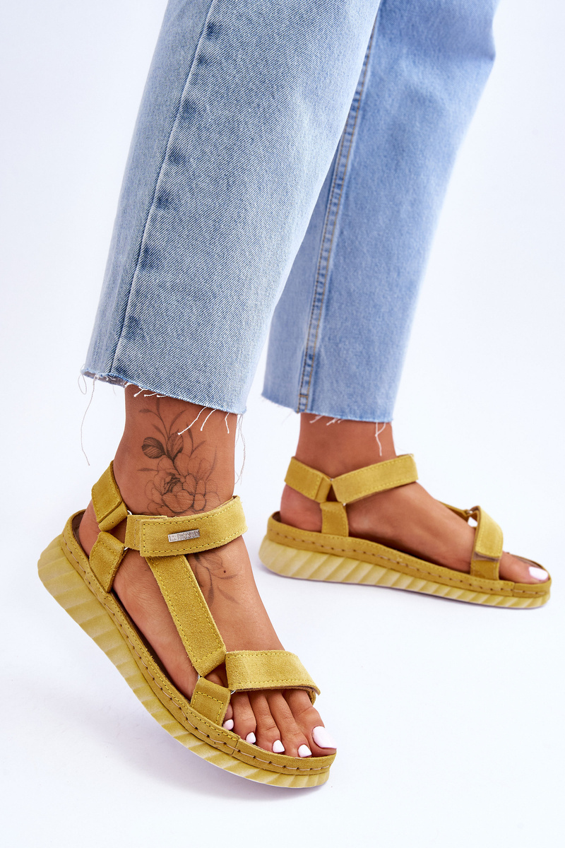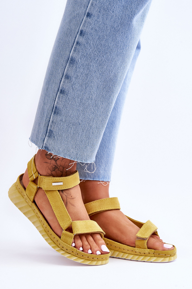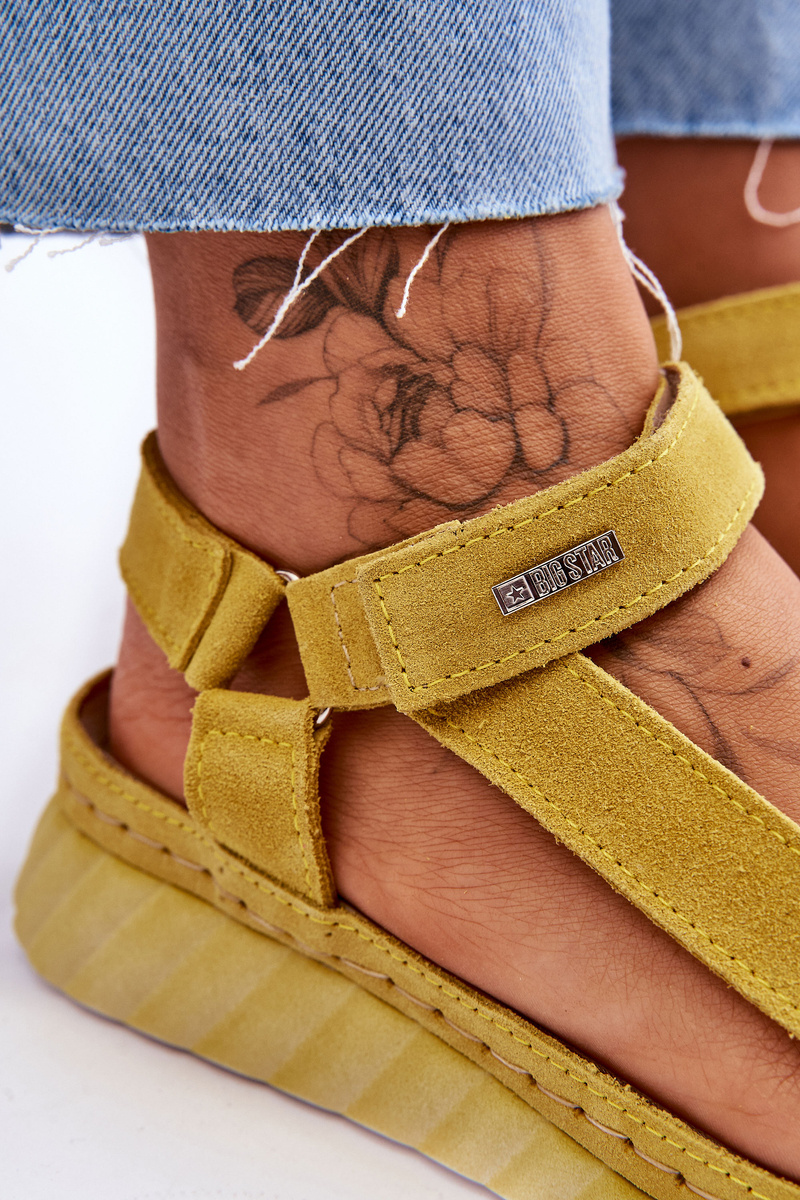 Sandały Zamsz Rzep Żółte Big Star LL276013