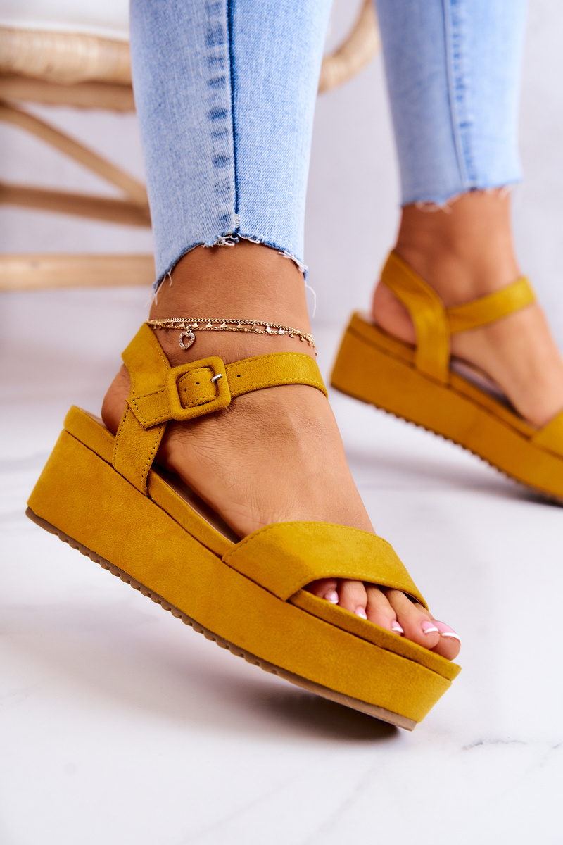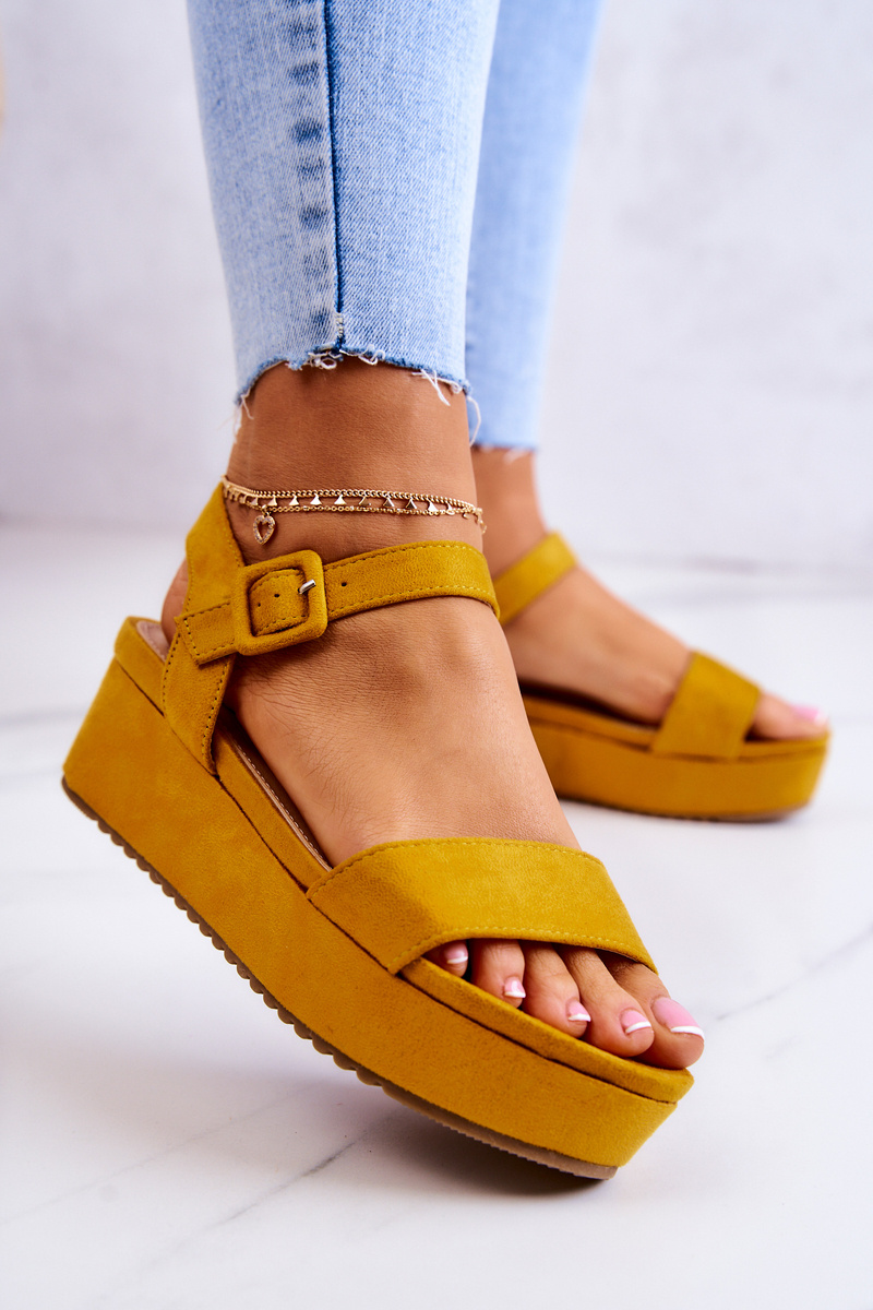 Sandały Zamszowe Modne Platforma Żółte Sariah
