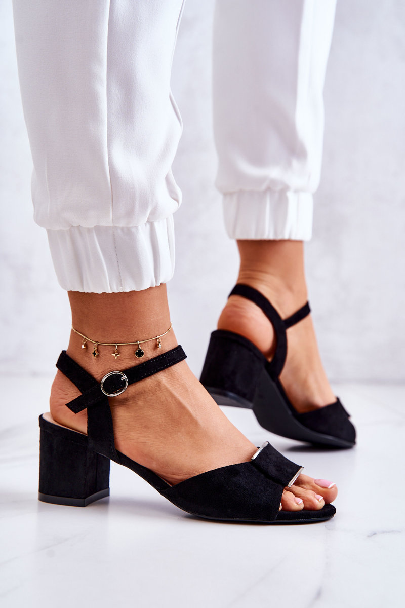 Sandały Zamszowe Obcas Słupek Czarne Lorisa