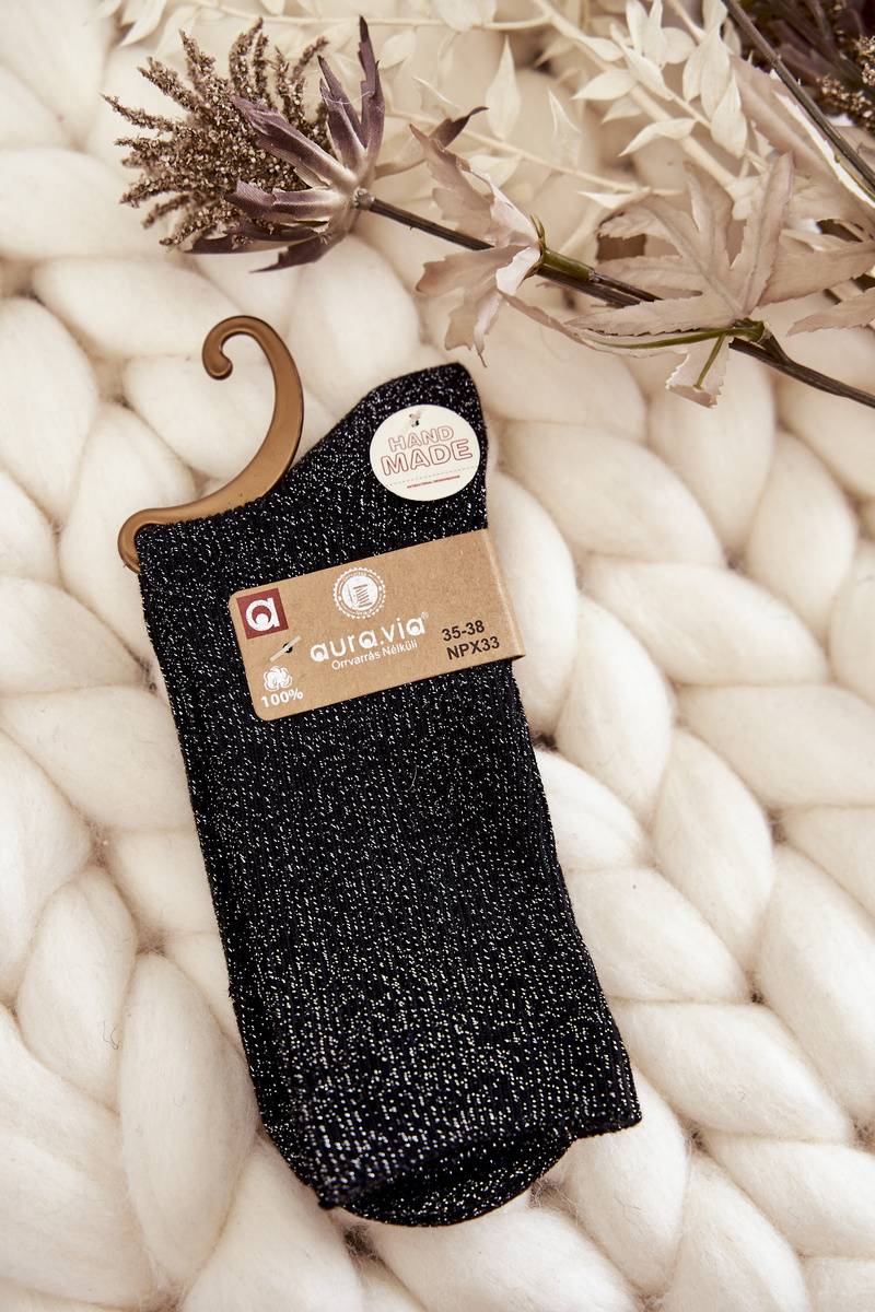 Skarpetki Damskie Antybakteryjne Błyszcząca Nić Czarne
