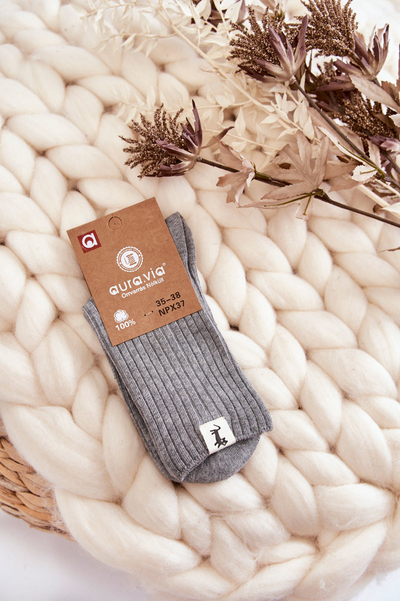 Skarpetki Damskie Bezuciskowe Prążkowane Jasnoszare