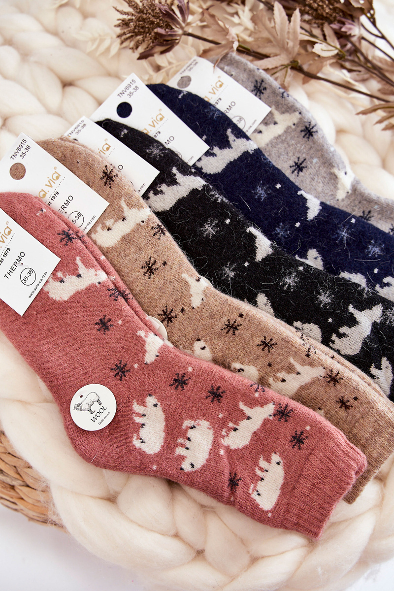 Skarpetki Damskie Wełniane Niedźwiedź Polarny Różowe