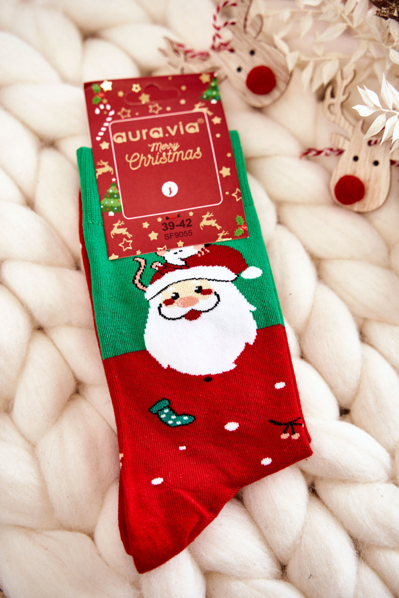 Skarpetki Męskie Świąteczne Bawełniane W Mikołaje Zielono-Czerwone