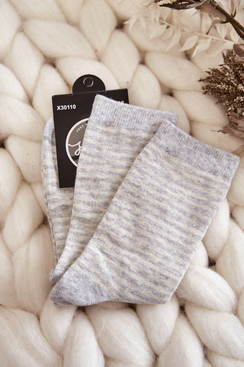 Skarpety Damskie Bawełniane Klasyczne Paski Beżowo-Szare