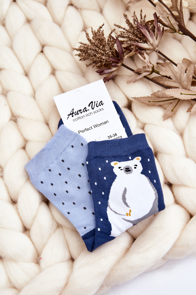 Skarpety Damskie Śmieszne Nie Do Pary Miś Polarny Granatowe