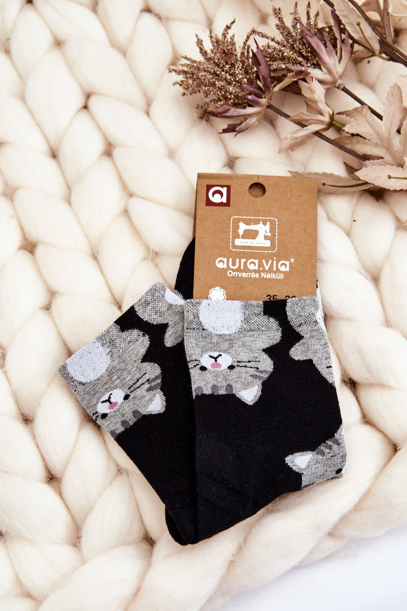 Skarpety Damskie Śmieszne Zwierzęcy Wzór Koty Czarne