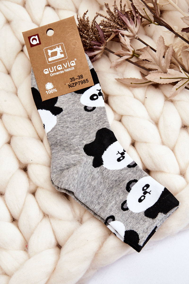 Skarpety Damskie Śmieszne Zwierzęcy Wzór Pandy Szare